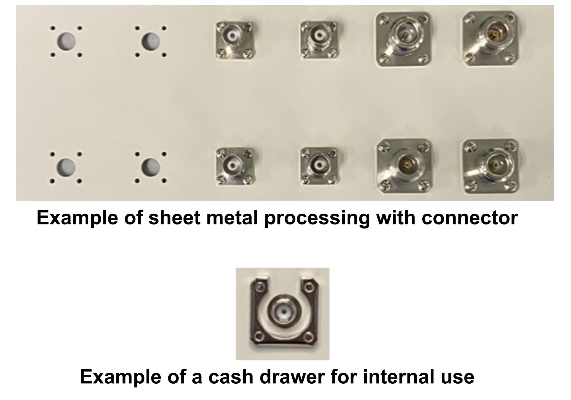 We offer a lineup of Impedance Converters, Coaxial Distributors, Coaxial Terminators, and Coaxial Fixed Attenuators, as well as Sheet metal fabrication with coaxial connectors on a made-to-order basis.